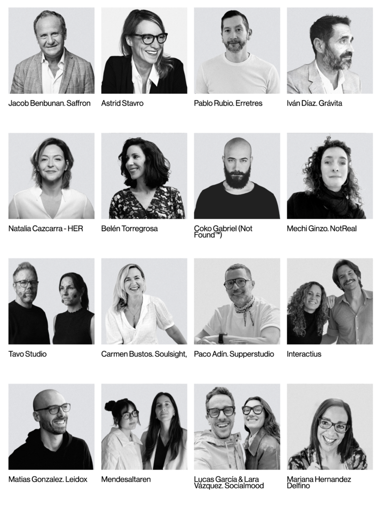 Y el cartel, la verdad, lo dice casi todo. Estarán Jacob Benbunan, CEO de Saffron; Astrid Stavro, fundadora y directora creativa; Pablo Rubio, de Erretres; Iván Díaz, de Grávita; Natalia Cazcarra, de HER; Belén Torregrosa, de Lavidita; Coko Gabriel, de Not Found™; Carmen Bustos, de Soulsight; Mechi Ginzo, de NotReal; Paco Adín, de Supperstudio; Matías González, de Leidox; Lucas García, de Socialmood; Carlos Ruiz y María Najarro, de Interactius; Tavo Studio; Mendesaltaren y Mariana Hernández Delfino.