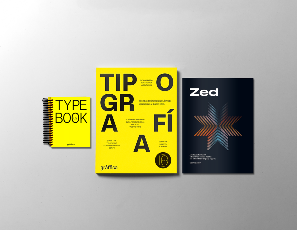 El Día del Libro en Gràffica será, ante todo, una celebración del papel y de la edición en todas sus formas. La jornada comenzará a las 18.00 h con la presentación de Revista Gràffica 41, nuestro especial dedicado a la tipografía, en un momento además muy significativo: este año se cumplen 10 años desde el nacimiento de la revista en papel. Durante esta sesión presentaremos también Type Book 02, la nueva edición que acompaña el lanzamiento, con más de 100 fundiciones y más de 400 estilos tipográficos, así como el espécimen de ZED, la tipografía de Typotheque que acompaña este número.