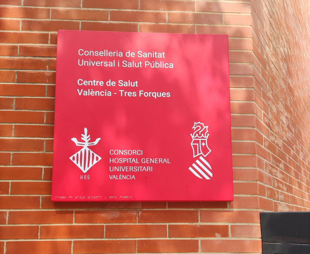 Buena prueba de ello es que hoy siguen presentes numerosos identificadores instalados entre 1985 y 2018, año en que se produjo la última actualización oficial del sistema gráfico. Rótulos, placas y señalizaciones continúan cumpliendo su función sin cuestionamiento alguno porque siguen identificando con claridad a la institución. El caso del Hospital La Fe de València es especialmente ilustrativo: un rótulo de gran formato con el logotipo original de 1985 y su tipografía histórica sigue presidiendo el edificio sin que exista, por ahora, una previsión clara de sustitución. No es una anomalía, sino un reflejo fiel de cómo funcionan estos procesos en la realidad.