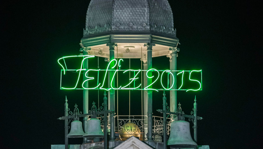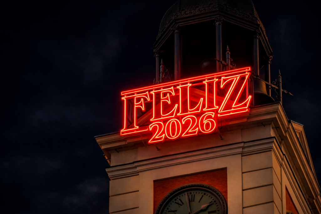 La Puerta del Sol marca el cambio de año, y su reloj se vuelve cada Nochevieja en uno de los encuadres más repetidos del país. Un punto fijo de cámaras, pantallas y retransmisiones que llega a millones de hogares. Este fin de año, el rótulo luminoso se ha convertido por primera vez en un espacio patrocinado. El símbolo más reconocible de la Nochevieja española queda así asociado, de forma explícita, a una iniciativa comercial de una empresa extranjera. ¿Qué implica esta ocupación del espacio público?