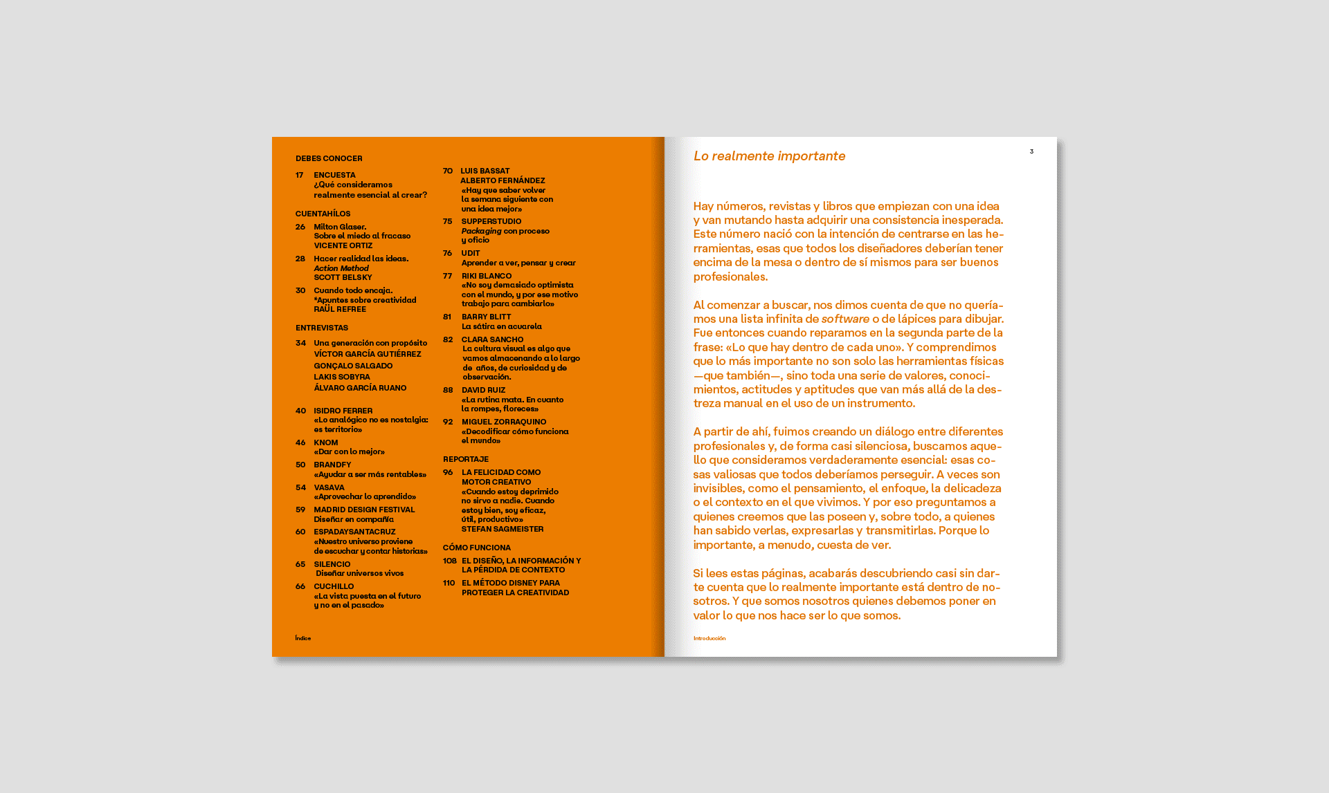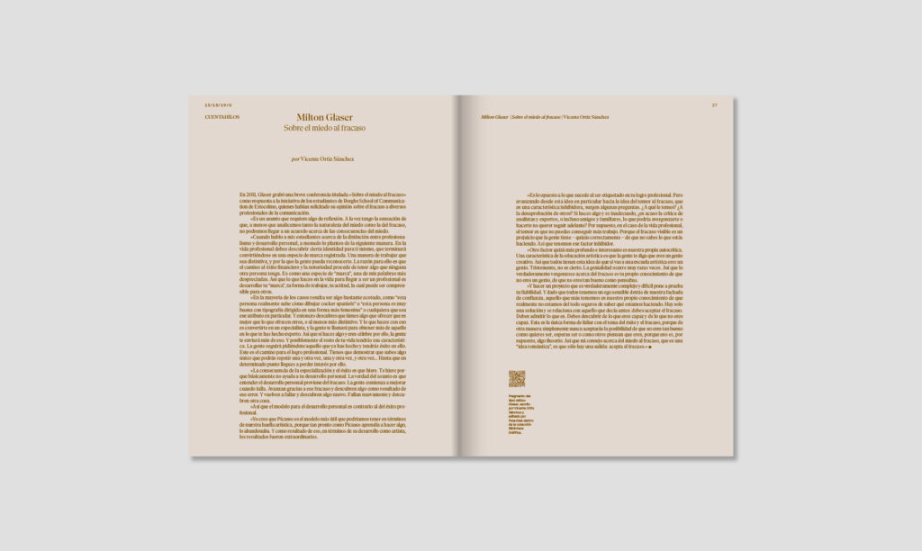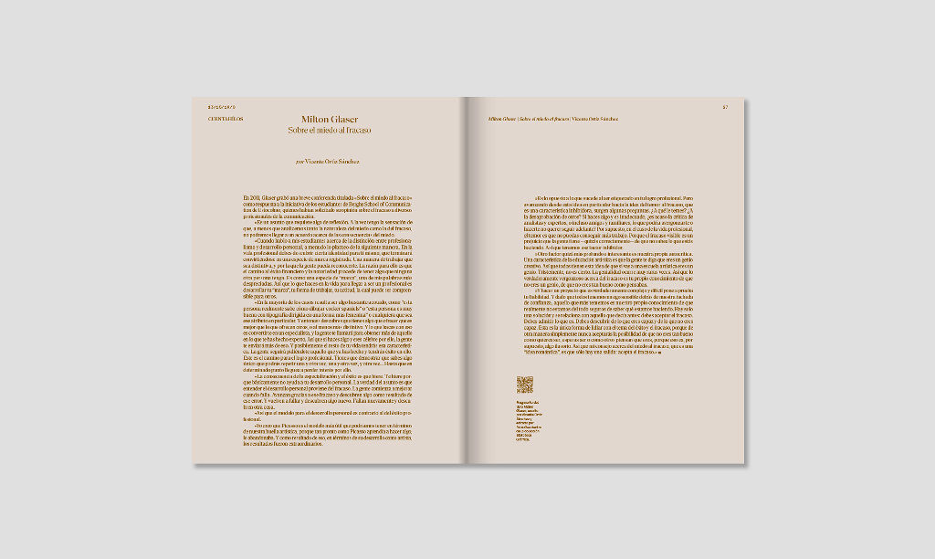 A través de entrevistas con Sagmeister, Isidro Ferrer o Vasava, y reflexiones de Milton Glaser, Scott Belsky y Raül Refree, exploramos el valor del error, la felicidad, la constancia y el pensamiento crítico como motores del proceso creativo en un presente marcado por la velocidad y la incertidumbre. Este número funciona como una guía para quienes crean. No es un manual al uso, pero sí un mapa de ideas, actitudes y aprendizajes que ayudan a entender cómo trabajar mejor.