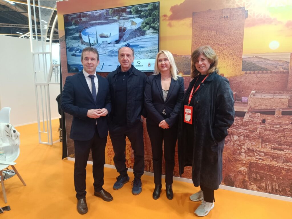 El alcalde de Jaén, Julio Millán, junto con la Primera Tte. Alcalde y concejala de Cultura y Turismo, María Espejo, los arquitectos Alfonso Mollinedo e Isabel Rus y el diputado de Promoción y Turismo, Francisco José Lozano, ha asistido a la presentación en FITUR 2026 del Centro de Innovación del Paisaje Olivarero.