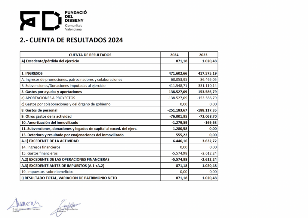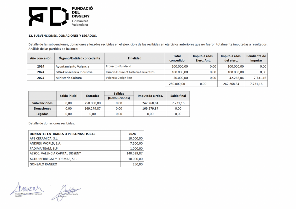 La Fundació del Disseny de la Comunitat Valenciana ha hecho públicas las cuentas auditadas correspondientes al ejercicio 2024, formuladas en mayo de 2025. El análisis detallado de la memoria económica confirma, punto por punto, la información que Gràffica adelantó en septiembre de 2024 a partir de la filtración del presupuesto interno de la entidad.
