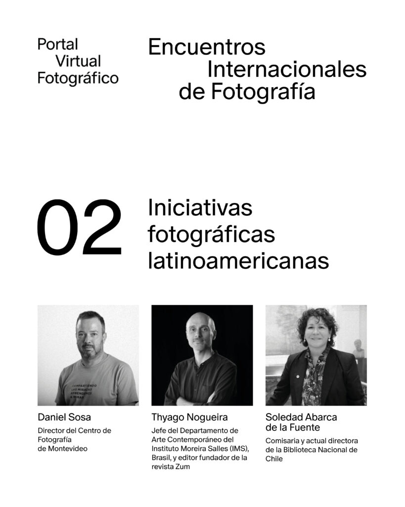 La segunda mesa pone el foco en Latinoamérica, abordando los desafíos actuales en la creación, difusión y preservación de la fotografía en un contexto global en transformación. Participan Daniel Sosa, director fundador del Centro de Fotografía de Montevideo; Thyago Nogueira, director de Arte Contemporáneo y Fotografía del Instituto Moreira Salles; y Soledad Abarca, directora de la Biblioteca Nacional de Chile.