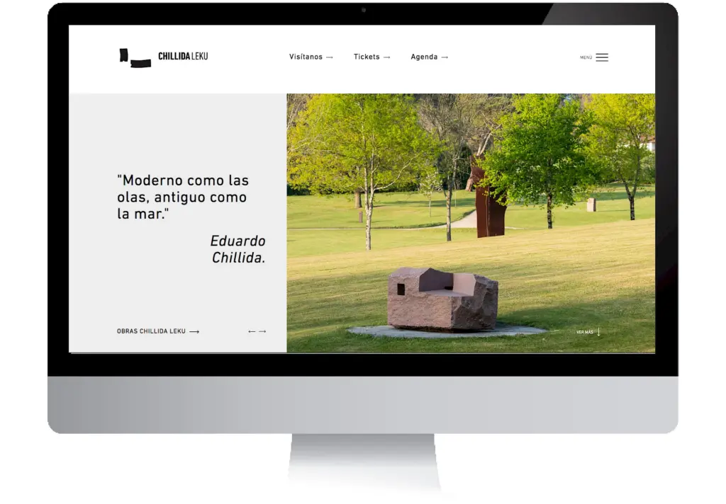 Nuestra labor es un ejercicio de interpretación del lenguaje del artista para proyectar la marca desde el respeto y el rigor creativo. Lo vivimos de forma integral en el proyecto de Chillida Leku, que supuso un reto de revitalización y actualización de la marca para adaptarla al siglo XXI. Partimos de una reflexión sobre el propio naming: decidimos eliminar capas y prescindir de la palabra “museo” para elevar el concepto de Leku (lugar) a una categoría global. El objetivo fue transformar el espacio en un destino emocional donde el arte y la tierra se funden, asegurando que la parte tipográfica estuviera balanceada y funcionara con precisión en todos los soportes, desde la señalética integrada hasta el entorno digital.