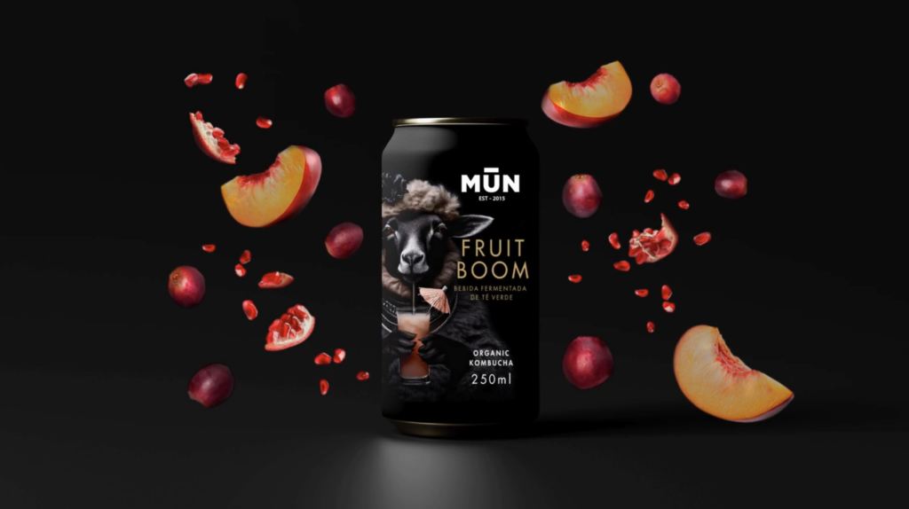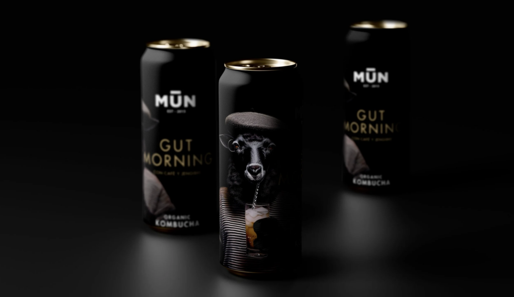 Lejos de reforzar los códigos habituales asociados a lo saludable o lo natural, MŪN Radikal se define desde el concepto “Proud to be the black sheep”. Una declaración de intenciones que entiende la marca como la oveja negra dentro del mundo de la kombucha: inconformista, provocadora y sin miedo a desmarcarse del rebaño. Esa idea se convierte en el eje narrativo de todo el sistema visual y articula una identidad que busca ser reconocible de inmediato en el lineal.