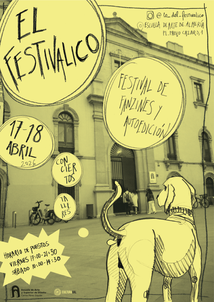 Almería se incorpora al circuito de la autoedición con el nacimiento de El Festivalico, un nuevo encuentro centrado en fanzines, publicaciones independientes y cultura DIY que celebrará su primera edición los días 17 y 18 de abril en la Escuela de Arte y Superior de Diseño Carlos Pérez Siquier. La cita, que se presenta como el primer festival de estas características en la ciudad, reunirá a creadoras y creadores locales y de fuera de la provincia en torno a formatos editoriales autogestionados, ilustración y prácticas gráficas contemporáneas.