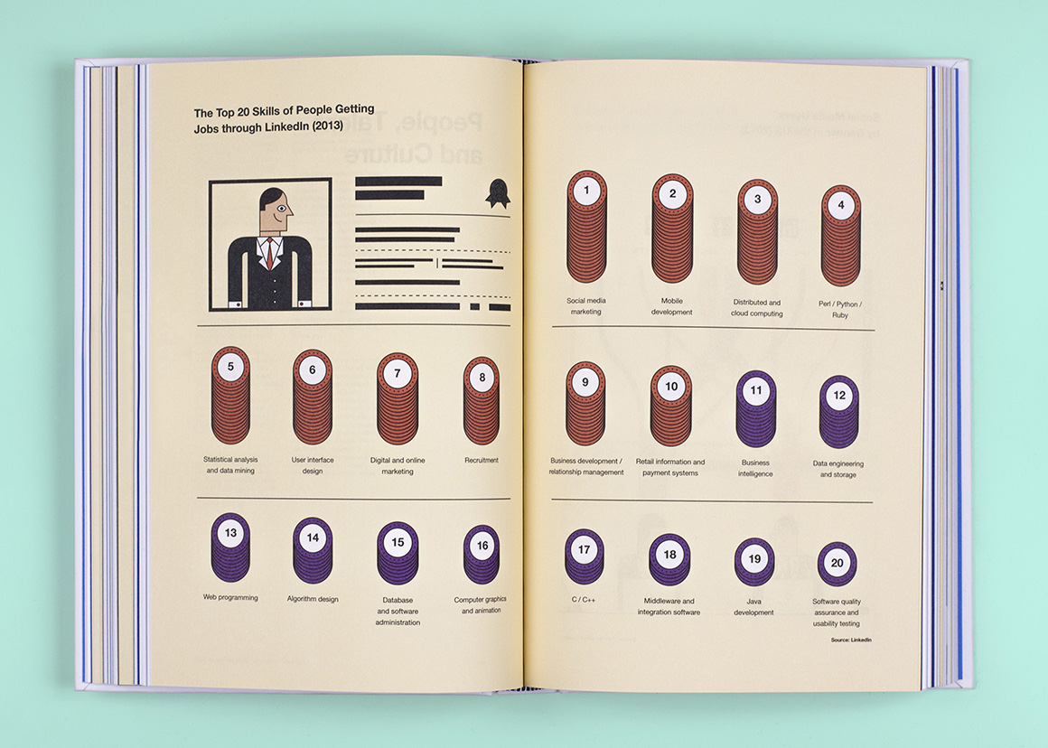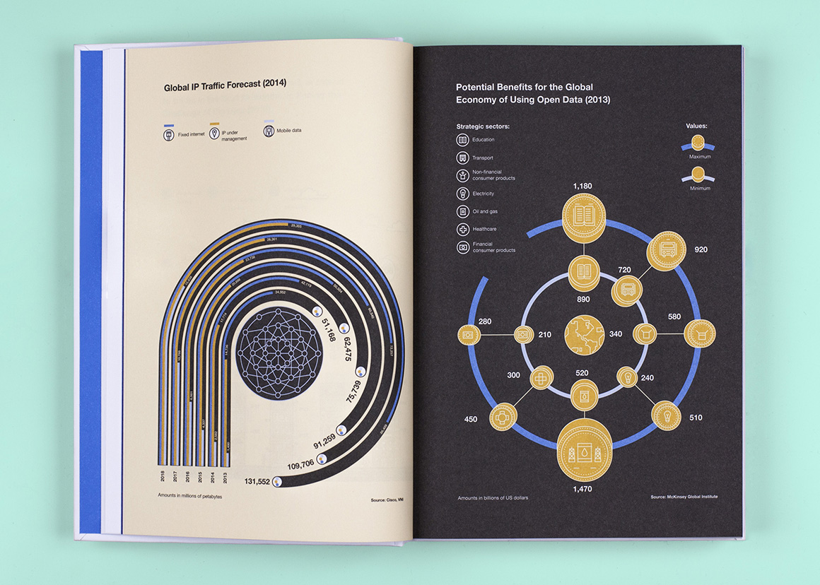 Relajaelcoco, Pablo Galeano y Francesco Furno han trabajado mano a mano para afrontar un reto: reinventar el libro corporativo en la era digital. El proyecto al que nos referimos llegó por encargo de TurnerLibros. «Nos pidió realizar la portada, infografías, gráficos y motion graphics para el nuevo libro anual de 2014 de BBVA OpenMind», explican en Relajaelcoco. El resultado es de lo más atractivo e inteligente, con una línea visual que se aleja de la pretenciosidad habitual de las entidades financieras.