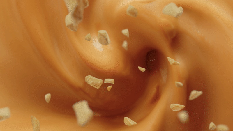 La segunda pieza se centra exclusivamente en la crema de chocolate y avellana. Aquí el tono se vuelve más introspectivo e indulgente, con un paisaje fluido, denso y casi hipnótico que enfatiza el carácter envolvente del producto. Ambas piezas comparten una dirección de arte muy marcada, donde el color, la luz y el ritmo están al servicio de una experiencia sensorial antes que de un mensaje explícito.