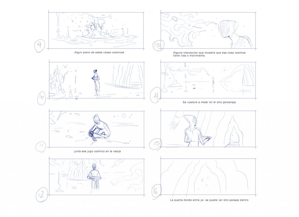 Y así fue como el animatic también llegó de forma natural: un ritmo reflexivo y tranquilo que le permite a uno detenerse en la insoportable cantidad de pequeños detalles que estaríamos animando. Además, ese ritmo se sintió cósmico y solemne.
