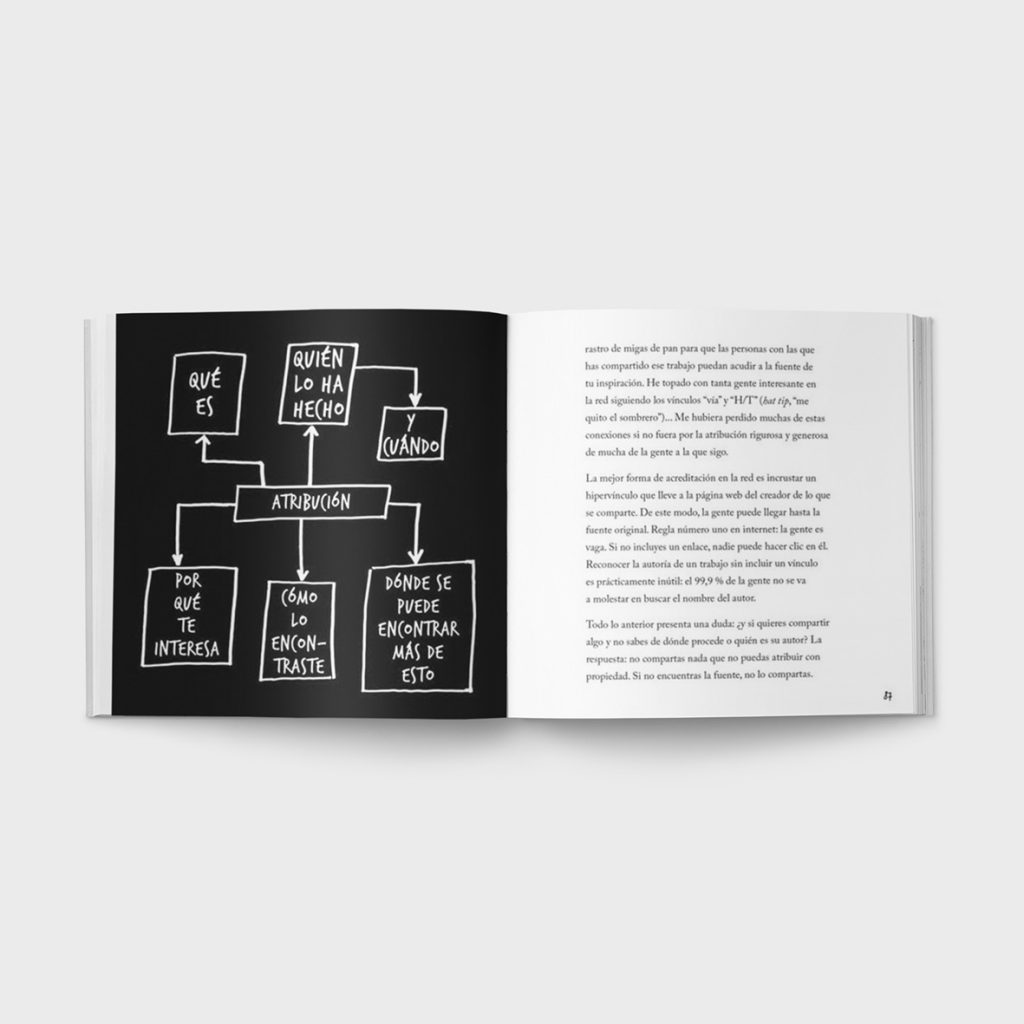 Me propuse crear una especie de manual para principiantes que enseñe las claves de esta forma de operar, y este es el resultado: un libro para aquellas personas que aborrecen la sola idea de la autopromoción. O, si se prefiere, una alternativa a la autopromoción. Mi intención es tratar de enseñarte a pensar en tu trabajo como un proceso sin final, a compartir ese proceso de manera que atraiga la atención de personas que pueden estar potencialmente interesadas en lo que haces y a lidiar con los pros y los contras de exponer tu trabajo (y de exponerte tú mismo) al mundo. Si mi libro anterior, titulado Roba como un artista, iba de cómo “robar” influencia a otras personas, el presente texto habla de cómo influir en otras personas dejando que ellos te roben a ti.