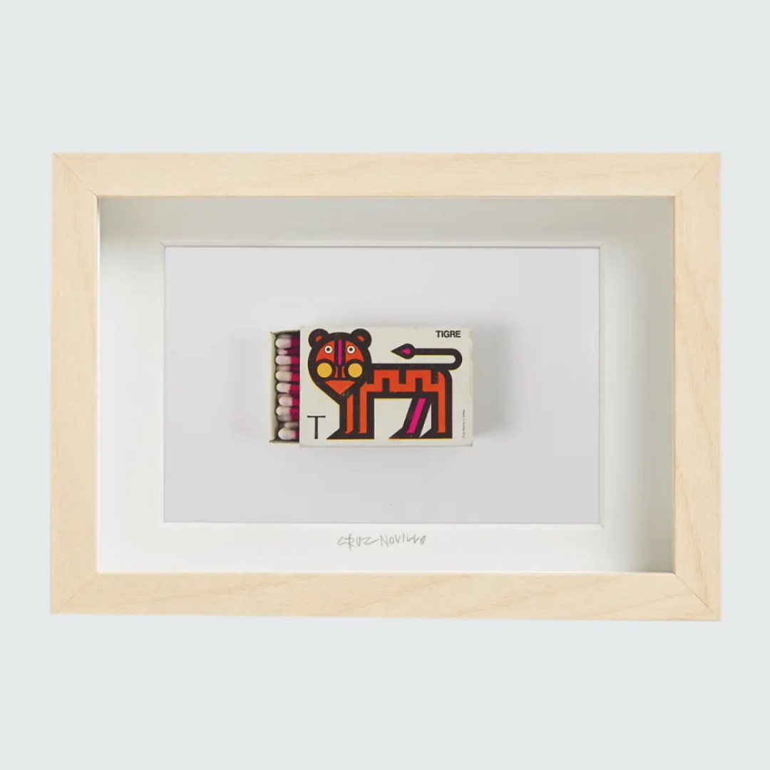 Caja de cerillas original de 1968 diseñada por Cruz Novillo para la serie ABC animal de Fósforos del Pirineo. Se vendían en los estancos de manera individual o en un estuche que contenía los 28 animales de la A a la Z.