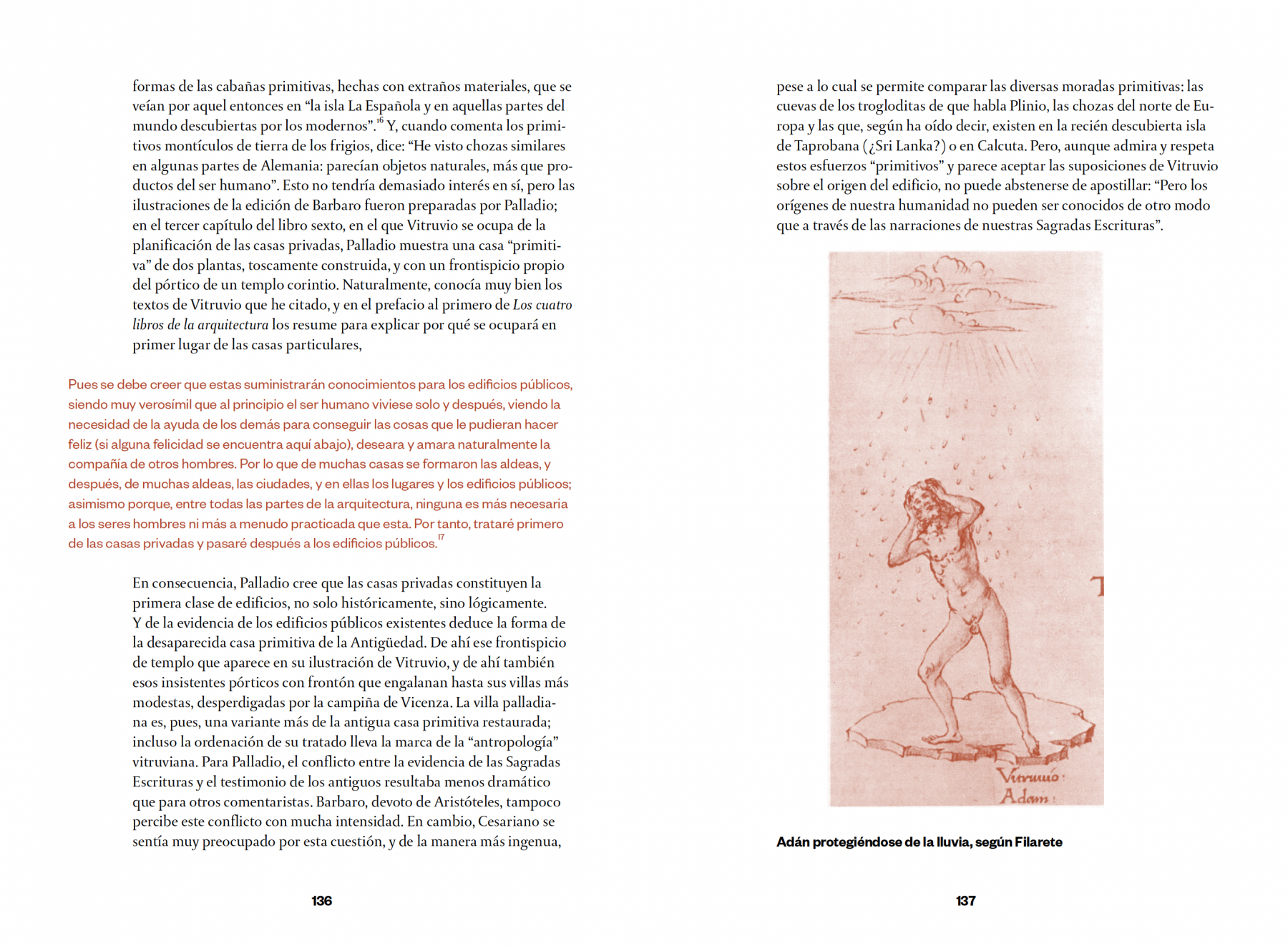 Publicada por primera vez en 1974 y convertida hoy en un referente indispensable para repensar la arquitectura actual, esta obra nos introduce también en algunas de las discusiones teóricas que han marcado la evolución de la arquitectura (el origen de los órdenes, la disputa entre los Antiguos y los Modernos o la evolución de la cabaña de madera al templo de piedra), mostrando cómo las distintas explicaciones históricas han tenido su origen en convicciones opuestas y enfrentadas.