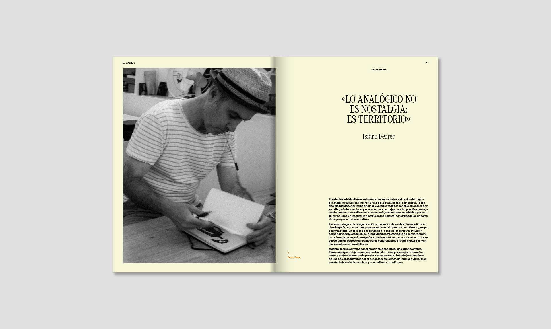 A través de entrevistas con Sagmeister, Isidro Ferrer o Vasava, y reflexiones de Milton Glaser, Scott Belsky y Raül Refree, exploramos el valor del error, la felicidad, la constancia y el pensamiento crítico como motores del proceso creativo en un presente marcado por la velocidad y la incertidumbre. Este número funciona como una guía para quienes crean. No es un manual al uso, pero sí un mapa de ideas, actitudes y aprendizajes que ayudan a entender cómo trabajar mejor.