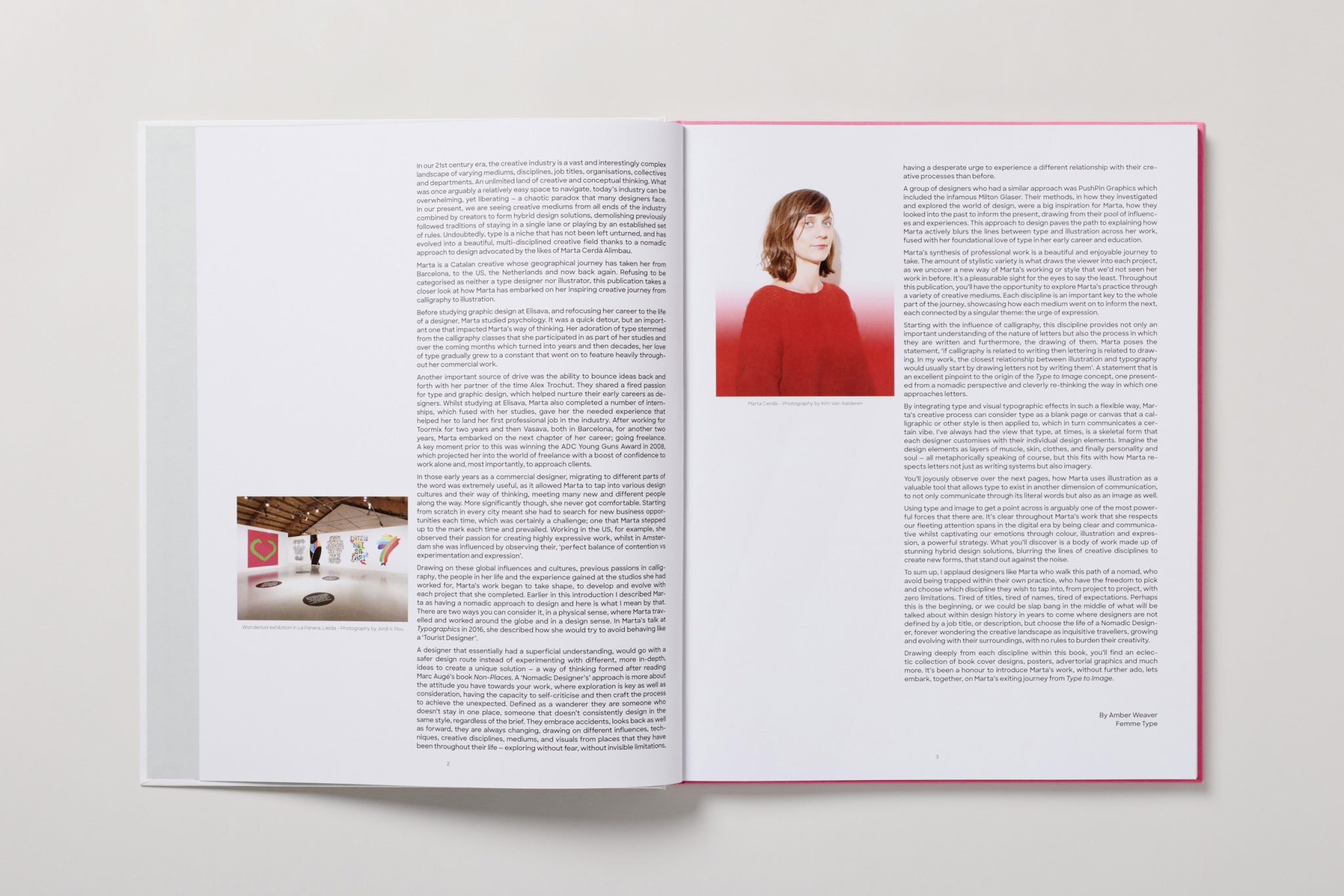 Since 2008, she has worked on a host of global projects which call for art direction, design, illustration and custom typography for arts, culture and advertising clients in her native Barcelona and abroad.
